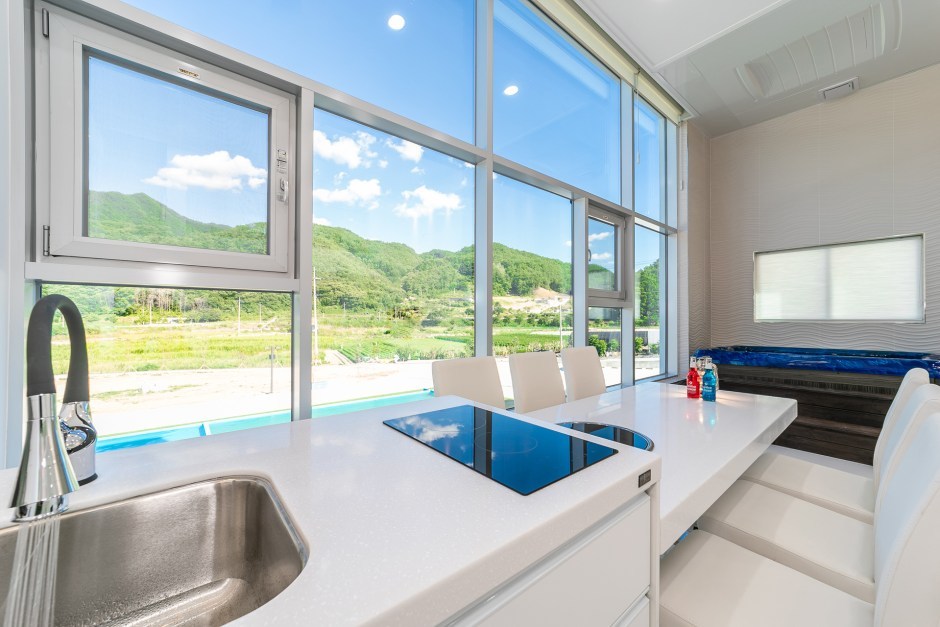 네번째로 소개하는 단양 숙소는 ‘르블랑 펜션‘이다. 단양 팔경 사인암 근처에 위치한 숙소로 단양 르블랑 펜션은 전객실 전면 통유리창이 구비되어 있어 단양 팔경 뷰를 제대로 즐길 수 있다. 또한 전객실 식탁에 쿡젠이 설치되어 있어 무료로 개별 바베큐 이용이 가능하다. 또한 단양 패러글라이딩, 카페산 등 단양 핫플과는 차로 30분 거리에 위치해 있다.