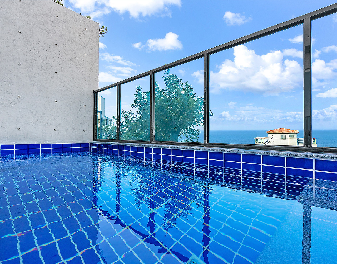 이오스 풀빌라는 모든 객실에 개별 수영장이 마련되어 있다. 탁 트인 오션뷰를 바라보며 사계절 물놀이를 마음껏 즐길 수 있다! B301, C301, C302호에는 루프탑 수영장이 설치되어 있어 더욱 개방감 있는 물놀이를 즐길 수 있다.