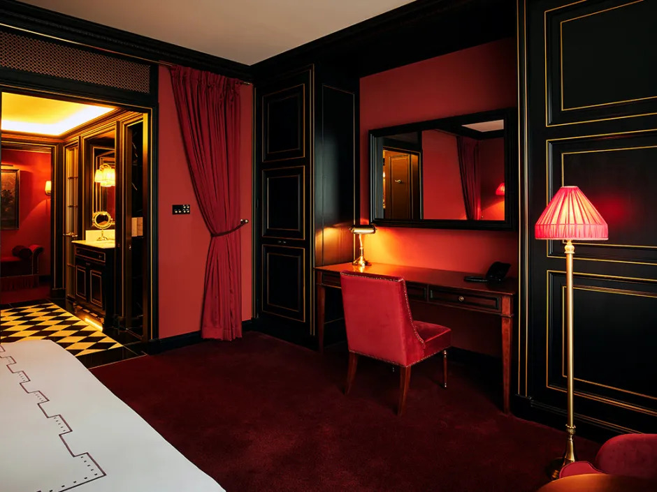 레스케이프 호텔의 시크레 그랜드 디럭스 룸은 고급스럽고 로맨틱한 무드의 객실입니다. 가장 화려하고 아름다운 벨 에포크 시대를 연상시키는 섬세한 연출이 매력적이죠. 시그니처 향인 은은한 장미향도 느낄 수 있어요.