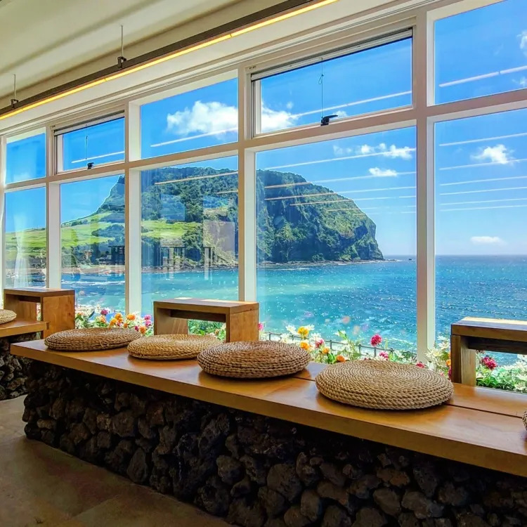 호랑호랑 성산카페는 성산일출봉 인근 루프탑 오션뷰 카페로 카페 앞으로 바다가 펼쳐져 있어 제주 여행의 기분을 물씬 느낄 수 있다. 카페 근처에 광치기해변이 있어 유채꽃을 감상하기에도 좋다!