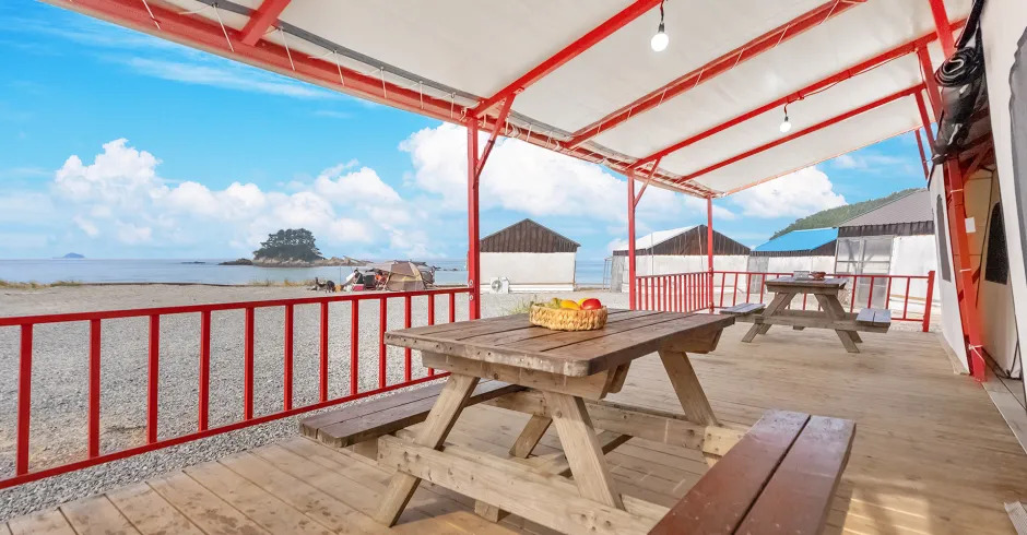 반려견과 함께할 수 있는 오션뷰 캠핑장이다. 최대 6마리까지 동반 입실 가능하다. 드넓은 자연 속에서 아이들이 뛰어노는 걸 보기만 해도 힐링이 된다. 또한, 숙소에는 야외 수영장과 트램펄린, 대형 편의점이 자리했다. 삼겹살과 항정살, 소시지, 각종 반찬이 포함된 바비큐 세트를 판매 중이라, 무겁게 장 봐 오지 않아도 된다.
