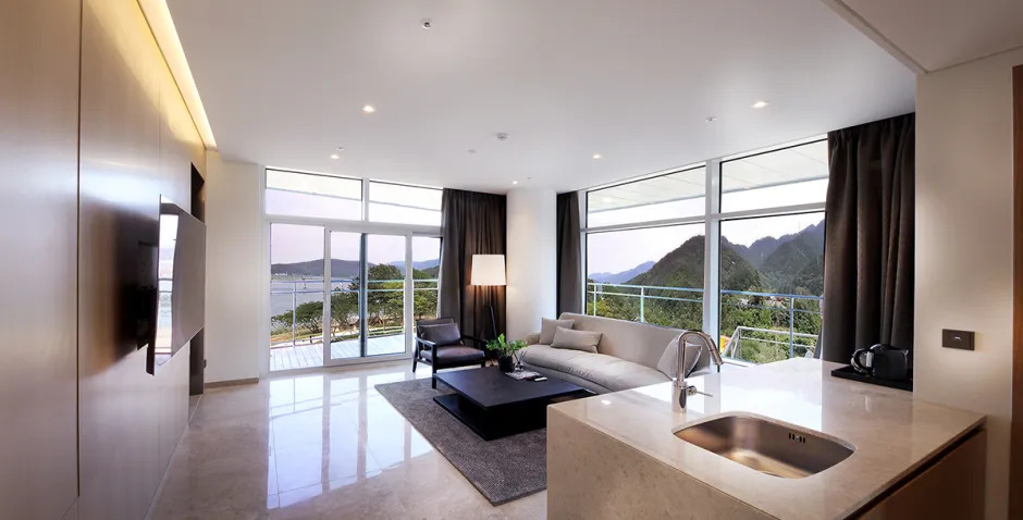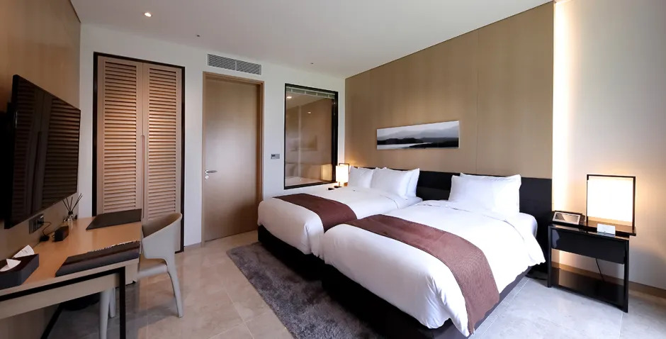 가평 마이다스 호텔의 객실은 디럭스, 프리미어, 스위트로 이루어졌다. 휠체어 이용 고객을 위한 객실도 마련되어 있다.