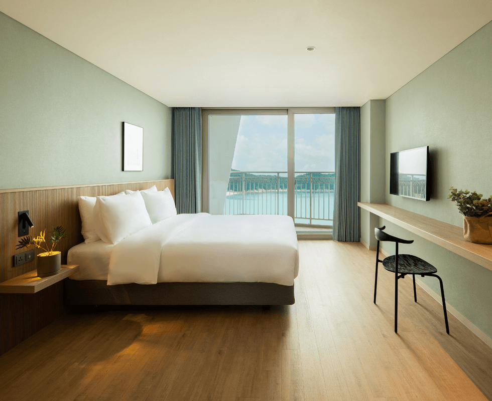 커플 여행에 제격인 어반 더블룸은 더블베드와 TV, 냉장고, 전자레인지, 전기포트 등이 갖췄으며, 테라스가 설치되어 있어 객실 내에서 탁 트인 오션뷰를 감상할 수 있다.