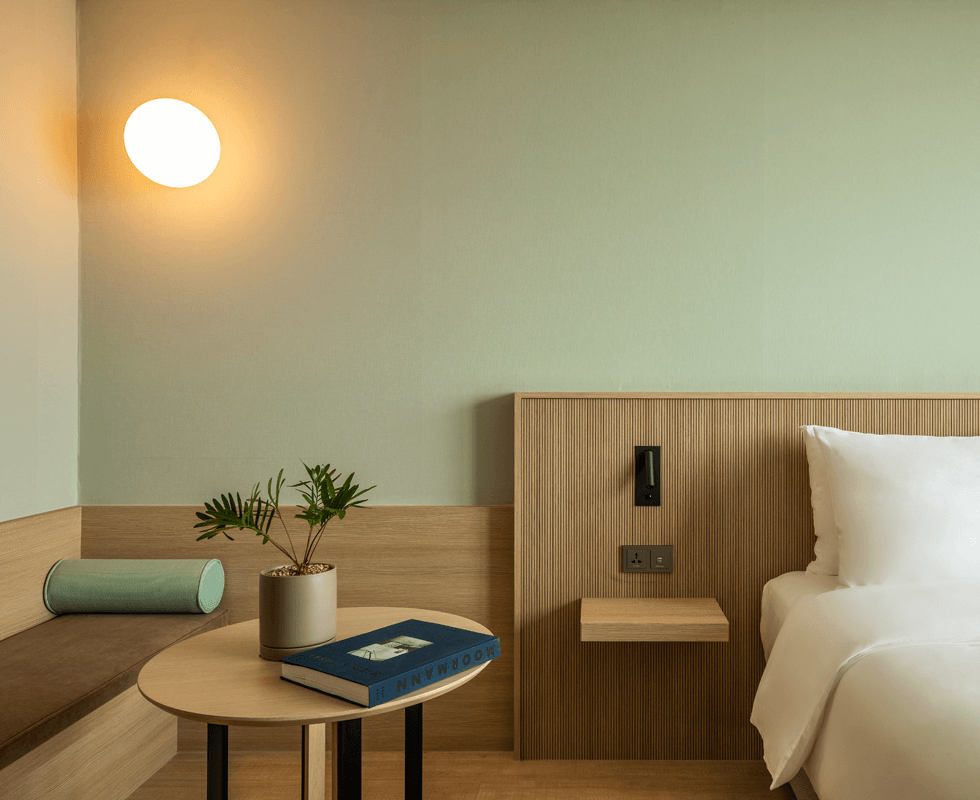 우드와 파스텔컬러가 조화를 이루고 있는 현대적인 감각이 매력적인 어반 룸은 침대 타입에 따라서 어반 듀플렉스, 어반 더블, 어반 트윈, 어반 마루까지 총 4가지 객실로 세분화되어 있다.