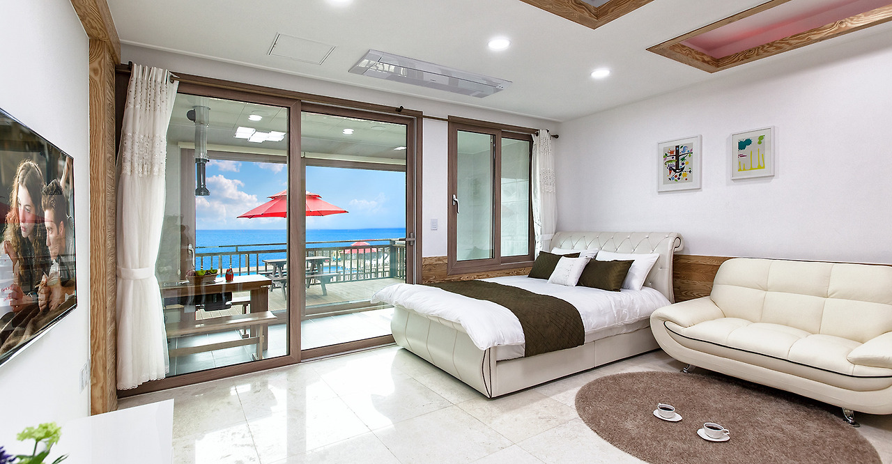 따스한 햇빛이 스며들어 편안함을 주는 썬댄스펜션은 전 객실 동막해수욕장 바다조망을 한눈에 바라 볼 수 있으며 명품제트스파를 객실에서 즐길 수 있어 커플여행과 가족여행에 두루두루 추천하는 곳이다!