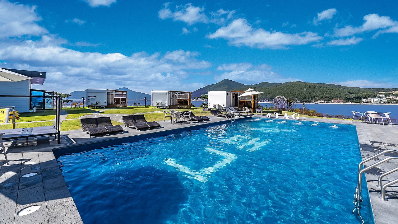 전 객실에 테라스를 갖춰 프라이빗 한 공간에서 아름다운 바다를 바라보며 맛있는 바비큐를 즐길 수 있는 곳인데, 숯과 그릴은 2인 기준 1만 원만 지불하시면 이용할 수 있다. 그뿐만이 아니라 테라스에는 최고급 월풀 욕조도 설치되어 있으니 따뜻한 힐링 스파까지 즐길 수 있다! 스파는 별도의 추가금 없이 이용할 수 있다.