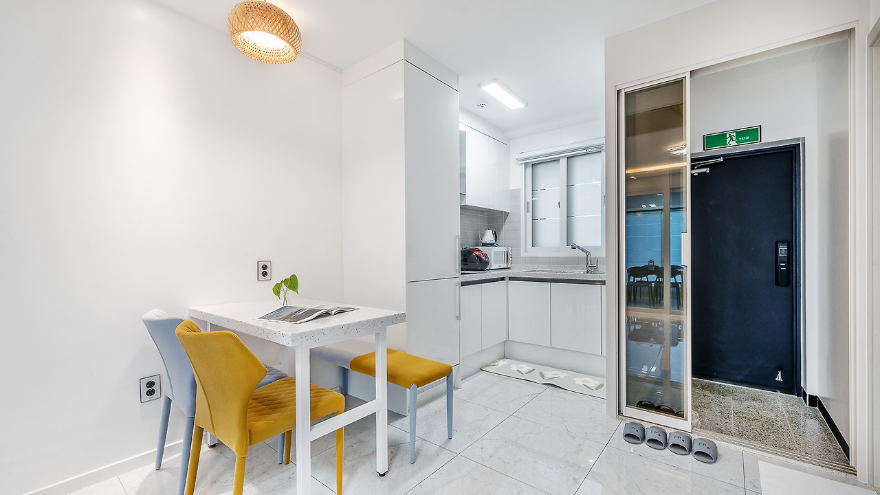조식은 따로 제공되지 않는다. 대신 객실 내부에서 연기가 발생하는 고기와 생선 등의 요리를 제외한 간단한 취사가 가능하다! 인덕션과 전자레인지, 전기포트, 냉장고, 냄비, 각종 식기류 등 알차게 준비되니 바비큐 재료부터 밀키트까지 다 챙겨와도 될 거다!