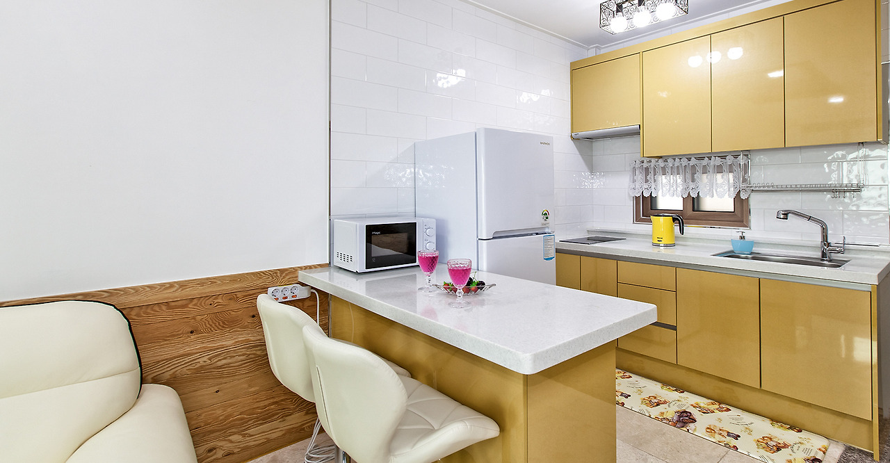 아침식사는 따로 제공하지 않지만, 객실 내부에서 취사가 가능하다. 냉장고, 인덕션, 전자렌지, 커피포트, 전기압력솥 등 취사도구 및 기본양념이 준비돼 있다.