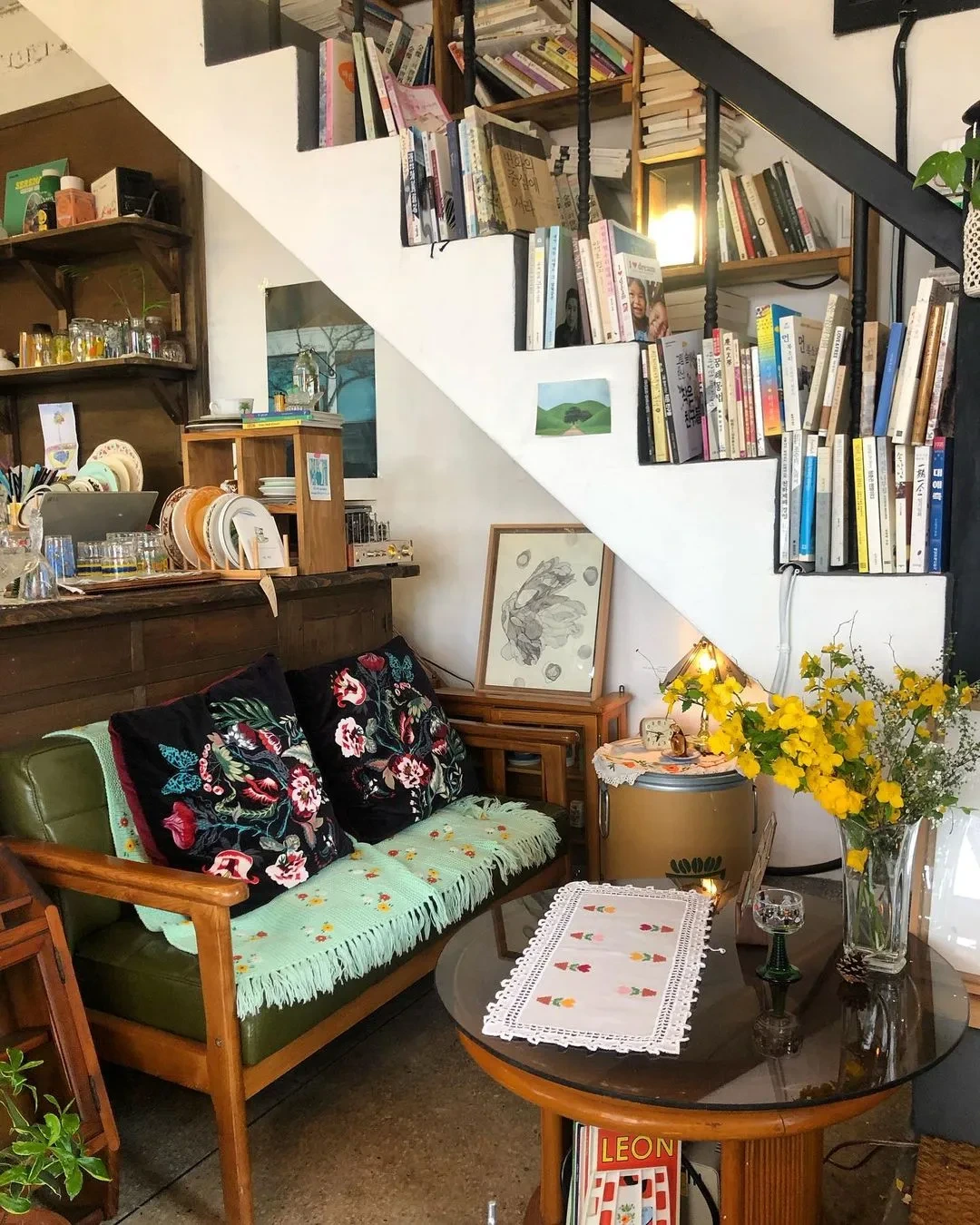어제 카페는 조용한 시골마을에 위치해 있다. 커다란 벚꽃 나무 아래에 숨은 레트로풍의 북 카페로 빈티지한 인테리어와 정성 가득한 음료를 즐길 수 있다. 카페 앞 벤치가 인기 포토존이니 예쁜 인증샷도 남겨 보자.