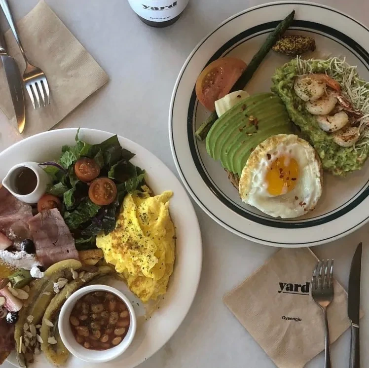 카페 야드는 커다란 통창으로 벚꽃 뷰를 즐길 수 있다. 2층 빈백 자리에 앉으면 생생한 전망을 감상할 수 있는데, 수제 생딸기 케이크와 브런치 메뉴가 유명하다. 보문단지 내 경주월드 옆에 자리해 여행 중에 들리기 좋다.