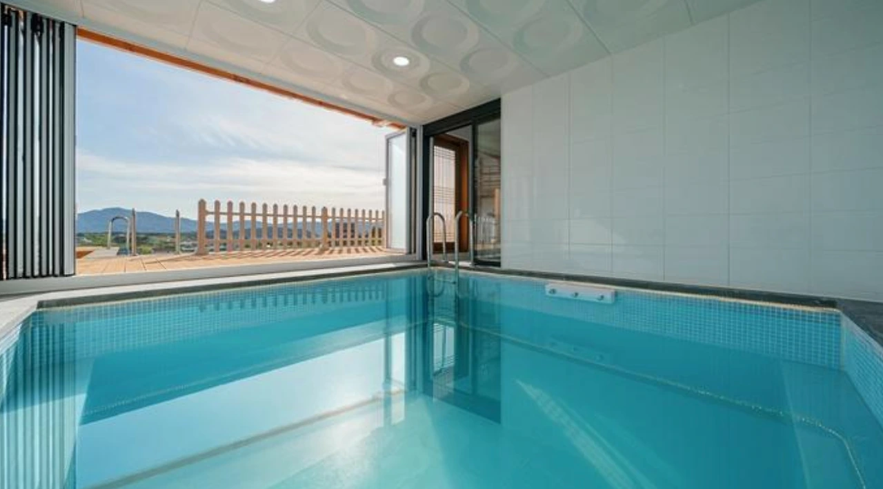온마루 한옥 풀빌라 펜션은 현대적인 느낌과 한옥 스타일이 잘 어우러진 한옥 펜션으로 아이들을 위한 키즈 풀빌라 독채가 있고 커플들을 위한 커플 스파 독채로 나누어져 있다. 풀의 경우 미온수라서 동계 기간이여도 즐기실 수 있다. 별채 객실에는 빔 프로젝터도 설치 되어 있어 큰 화면으로 영화 감상도 가능하다!