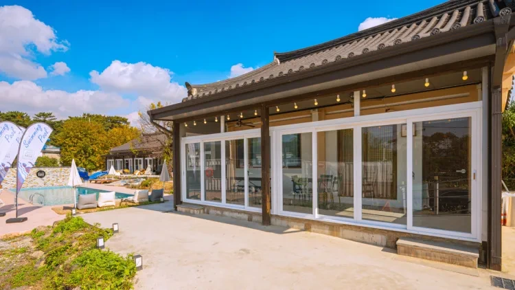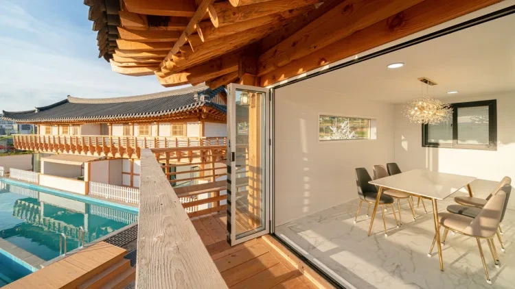 미담한옥풀빌라는 이름처럼 풀을 갖춘 한옥 스타일의 풀빌라로 경주에 위치 해 있으며 외관은 한옥 스타일이지만 내부는 현대적으로 꾸며져 있다.