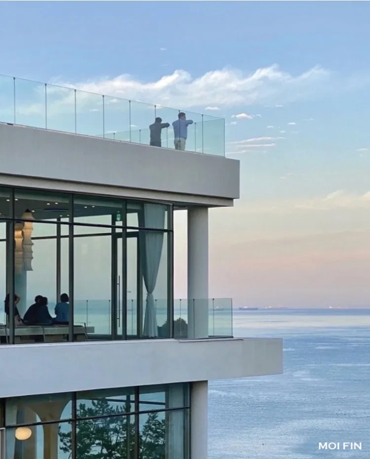 돌산에 위치한 오션뷰 카페 모이핀은 역대급 규모의 카페로 알려진 곳으로, 약 500평에 4층 규모의 카페다. 탁 트인 오션뷰를 배경으로 인생샷을 남기기에도 좋고, 특히 루프탑에서 여수 바다가 아름다운 곳이다.