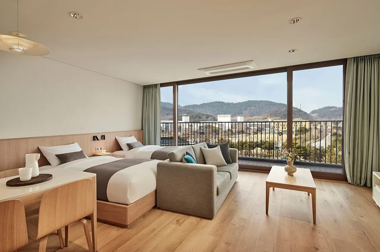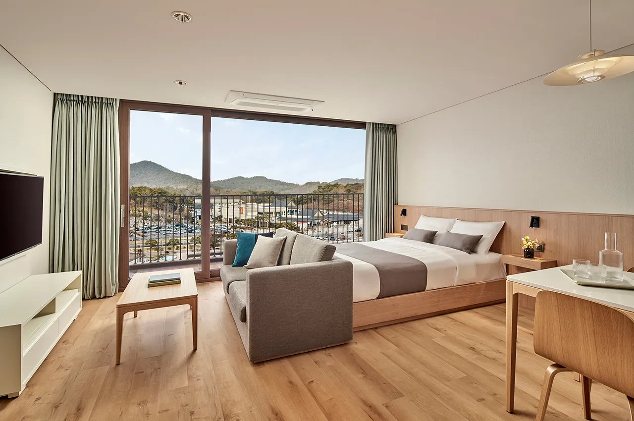 객실은 취사 가능한 주방을 갖춘 콘도와 호텔형 편의시설을 구비한 클린 타입으로 나뉜다. 세부 등급은 디럭스와 패밀리, 스위트, 프레지덴셜 스위트로 구분돼요. 올스테이 하면 10만 원대 초반부터 예약 가능하다.