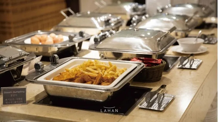 레스토랑 파티오에서 오전 7시부터 10시까지 조식 뷔페를 이용할 수 있다. 샐러드, 모둠 치즈, 요거트, 계란 요리, 소불고기, 피자, 만두, 수프, 죽, 한식 반찬 등 다양한 메뉴가 준비되어 있다. 특선 메뉴는 매번 바뀌니 꼭 맛보는 걸 추천하고 싶다.