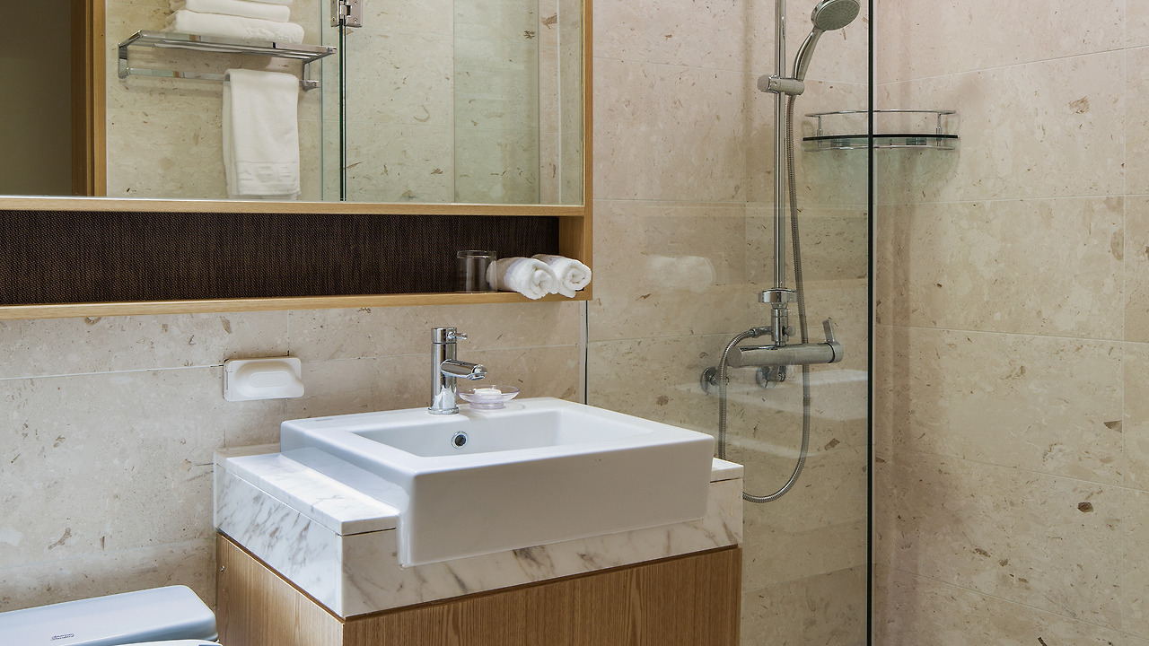 욕실은 깔끔한 샤워부스가 설치되어 있는데, 객실 내부에서도 온천수가 공급되기 때문에 따뜻한 온천수로 샤워를 하며 여행의 피로를 풀기 제격인 곳이다! 어메니티는 샴푸, 린스, 바디워시, 비누, 수건, 헤어드라이어 등 기본적인 제품은 모두 구비되어 있다.