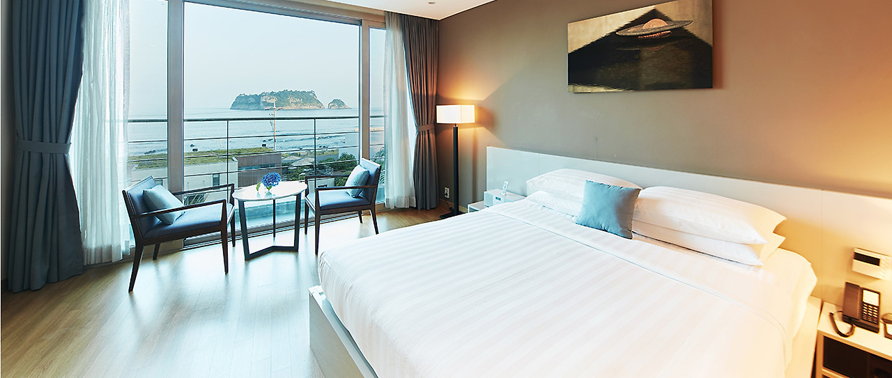 더 그랜드 섬오름 호텔은 본관과 신관으로 나누어져 있는데, 아늑한 유러피안 모던 스타일로 꾸며져 바다와 범섬, 수영장 등 전망을 감상할 수 있어 취향껏 선택할 수 있다. 원룸형부터 복층형 객실, 그리고 거실과 침실이 분리된 객실까지 다양하게 준비돼 가족여행에는 본관을 추천하고 싶다.