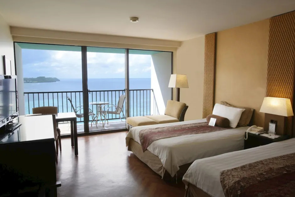 괌호텔은 투몬비치 앞에 위치해 매우 좋은 전망을 자랑한다. 대부분의 객실에서 탁 트인 오션뷰를 감상할 수 있다. 신상 호텔은 아니지만 모던하고 깔끔하게 유지되고 있다.