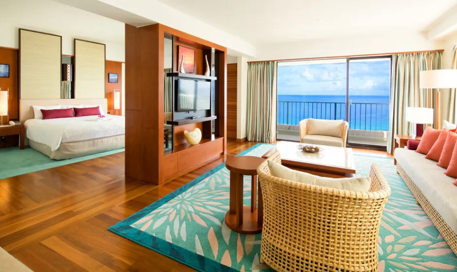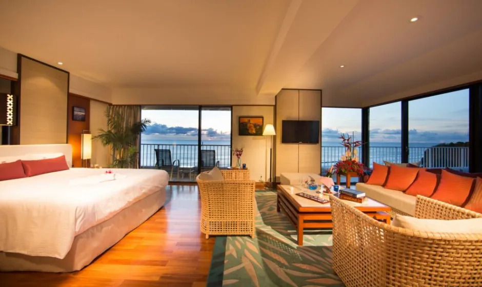 스위트 객실에는 넓은 거실도 있어 집처럼 편안히 쉴 수 있다. 스위트 객실 투숙 시 럭셔리 라운지도 이용할 수 있다. 좋은 전망이 중요한 분들에게 추천하는 괌호텔이다.