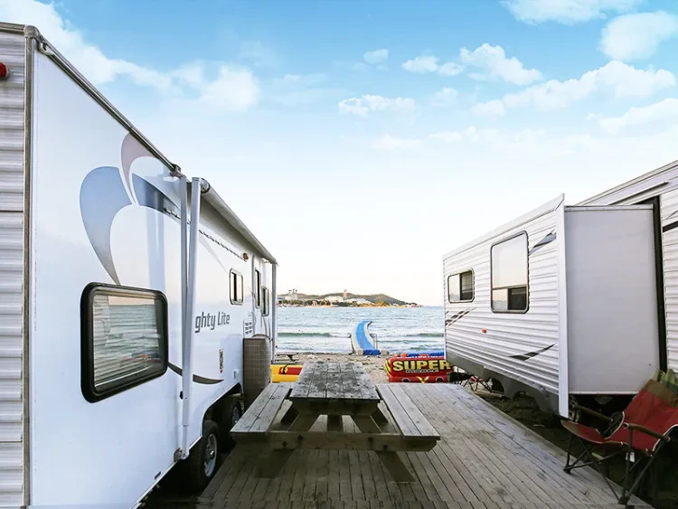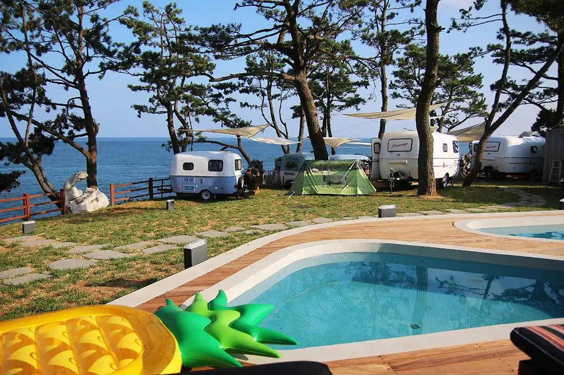 부산 해운대카라반펜션은 송정해수욕장 앞에 위치해있는 카라반 숙소로 송정 바다를 바라보며 카라반을 이용할 수 있다.