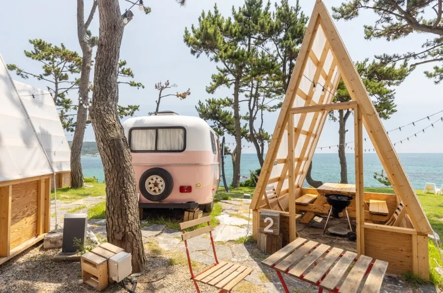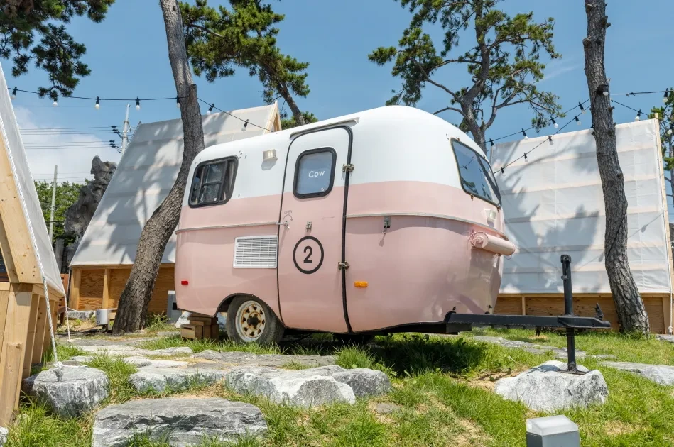더무빙카라반은 기장에 위치한 카라반 숙소다. 바다와 해수욕장이 인접하여 아름다운 경치를 지니고 있다. 감성적인 디자인의 카라반이 인상적이다.