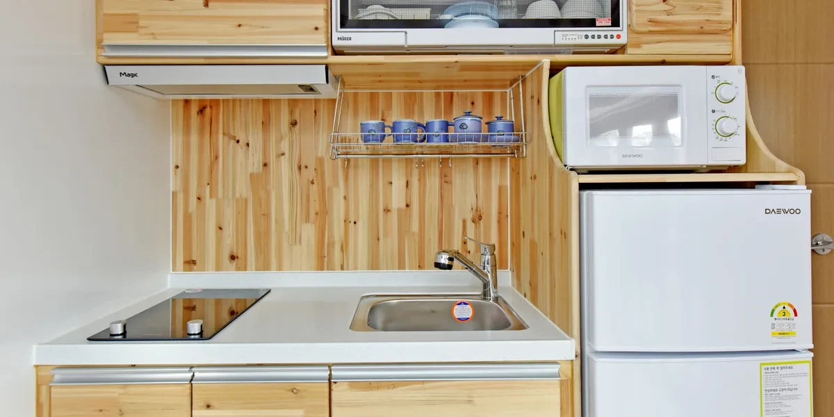 공용 시설 주방을 이용할 수 있으며 조리도구도 구비되어 있다. 객실에는 에어컨과 냉장고, 전기포트, 수건, 블루투스 스피커도 놓여있다.