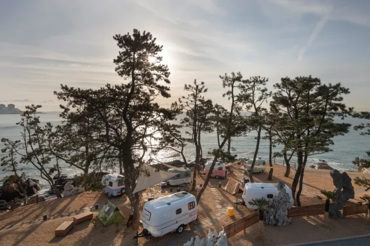 부산지오클럽카라반파크는 일광해수욕장 바로 앞에 위치했다. 탁 트인 바다를 바라보며 카라반에서의 하루를 보낼 수 있는데, 학리방파제 산책로를 거닐 수도 있다.