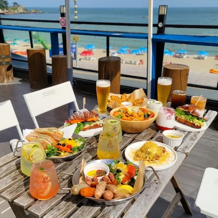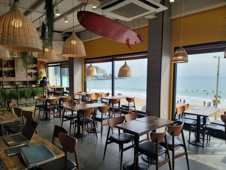 부산해운대카라반펜션 인근에 위치한 송정카페홀릭은 발리 감성을 즐길 수 있는 카페로 동남아 분위기를 물씬 풍기는 인테리어와 함께 송정 해수욕장이 한눈에 들어오는 전망을 갖추고 있다. 다양한 커피 종류와 샌드위치, 크로플을 맛볼 수 있다.
