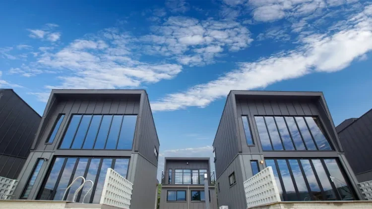 경주 55번가 풀빌라의 외관은 내부와 마찬가지로 굉장히 모던하다. 독채 풀빌라 펜션이라 그런지 프라이빗함이 더욱 부각되는 구조로 구성되어 있다. 경주 대릉원에서 펜션까지는 차로 21분거리다.