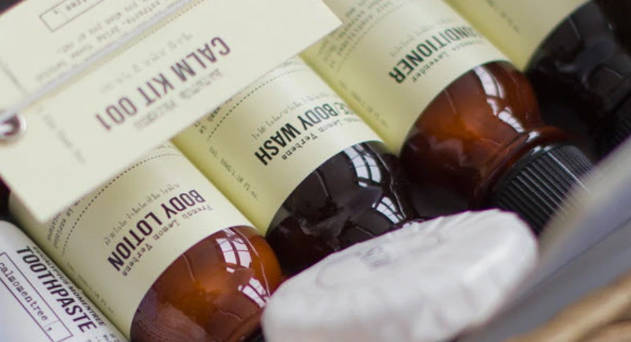 객실 어메니티로는 천연 유래 성분으로 만들어진 친환경 캄모멘트리 제품을 제공한다. 샴푸, 컨디셔너, 바디워시, 바디로션, 비누, 치약, 칫솔이 제공되며 호텔급에 버금가는 어메니티가 제공된다! 또한 입욕제도 제공되어 사용이 가능하다.
