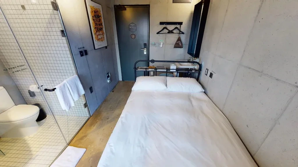 가격이 정말 착한 숙소다 보니 객실은 아담한 편이다. 하지만 편안한 에이스 침대와 오리털 침구로 숙면은 보장하는데, 뷰도 좋아 개방감이 느껴진다. 요청 시 가습기도 이용할 수 있다. 전기포트와 컵, 냉장고도 있어 편리하다. 호텔 지하에는 셀프 세탁실도 있다. 세탁기와 건조대가 2대씩 준비돼 있다. 간단한 빨래는 객실 내 미니 건조대를 이용할 수도 있다.