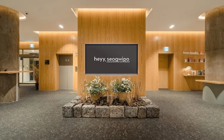 세 번째로 소개할 제주 한달살기 숙소는 ‘헤이 서귀포’로 헤이 서귀포는 감성 인테리어가 매력적인 숙소다. 최근에 지어진 호텔로 시설도 매우 쾌적하다. 위치도 서귀포 중심이라 다양한 편의시설을 누릴 수 있다. 천지연 폭포, 칠십리공원 등의 자연도 누리기 좋다. 호텔에서는 코인 세탁실, 오션뷰 요가, 고전 게임, 책 대여 서비스도 이용할 수 있다.