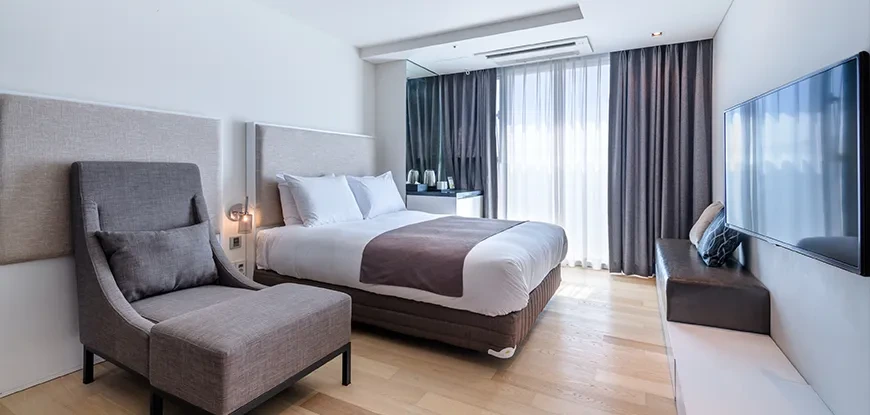 헤이 서귀포는 서귀포 바다 전망과 한라산 전망을 제공한다. 숙소 가격이 1순위라면 전망이 없는 객실 선택 시 저렴한 가격에 머무를 수 있다. 객실 타입도 다양해 1인 여행객부터 가족 여행객까지 모두 수용할 수 있다. 애견동반 객실도 보유해 반려견과 제주 한달살기도 가능하다. 객실에는 책상과 의자도 있어 간단한 업무도 처리할 수 있다!
