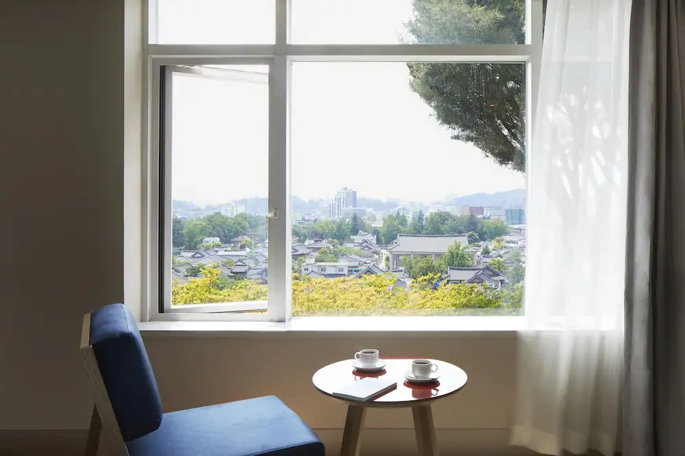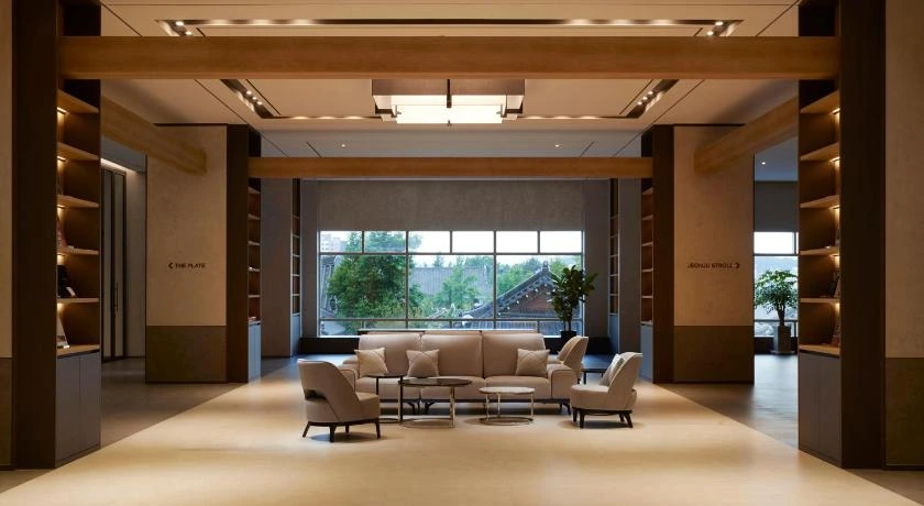 호텔은 군더더기 없이 깔끔한 화이트톤 외관을 자랑한다. 심플한 디자인 덕분에 한옥마을과도 튀지 않고 자연스럽게 어우러진다. 객실과 공용 공간도 모노톤을 사용하여, 부담스럽지 않고 편안한 분위기로 연출했다.