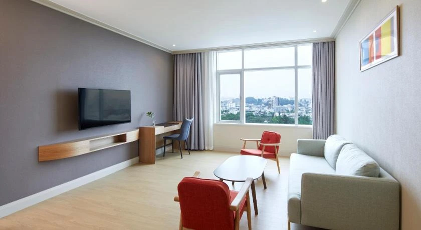 여유로운 가족 여행을 원하는 투숙객에게 인기가 높은 객실로 더블과 싱글 침대가 함께 마련돼 있어, 최대 4인까지 투숙 가능하다. 약 19.7평 크기로, 침실과 거실, 욕실로 구성됐다. 창밖으로는 한옥마을이 내려다 보인다.