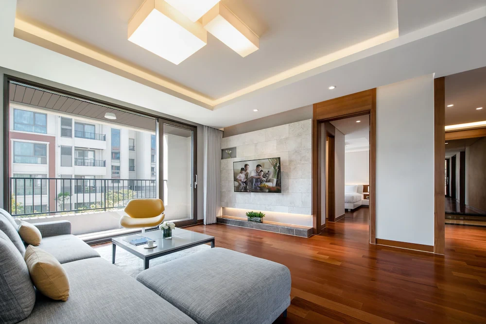 서머셋 객실은 온돌방, 침실방, 주방으로 나누어져 있다. 채광이 좋아 따스한 햇빛이 들어와 노곤노곤하게 쉴 수 있다. 테라스에서 일몰을 볼 수 있다. 이제 막 지어진 신축 건물처럼 깨끗하고 넓으며 침구류도 포근해서 꿀잠들 수 있다. 방마다 tv(넷플릭스 가능)와 화장대가 있어 가족단위로 머물기 좋은 리조트인데, 모든 방이 개별 냉난방 조절이 가능하다.
