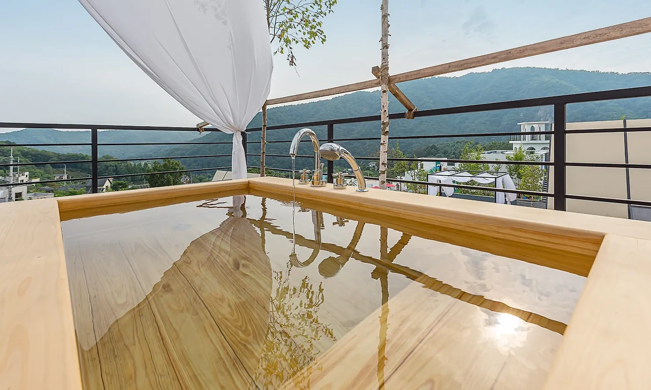 타입 B는 자쿠지가 설치돼 있다. 노키즈존으로 커플 여행객에게 추천하는 숙소다. 은은한 편백나무 향을 맡으며 여유를 즐겨보자.
