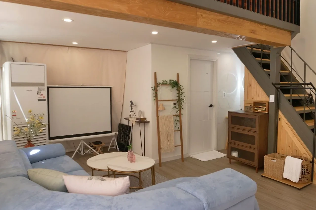 숲속의정원은 일반(펜션) / 카바나 글램핑 / 럭셔리 글램핑 크게 3가지 객실 타입을 제공하는데, 럭셔리 글램핑은 2021년 신축 객실로 최신 시설을 누릴 수 있다. 객실 내 개별 화장실이 있다는 게 가장 큰 장점인데, 빔프로젝터도 있어 영화를 보기에도 좋다.