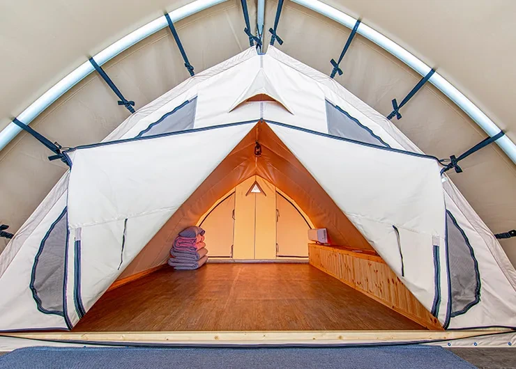 가평글램핑은 계곡/대형 2가지 객실 타입을 제공한다. 계곡 객실은 이름처럼 계곡 바로 옆에, 대형 객실은 수영장 옆에 위치하고 있다.