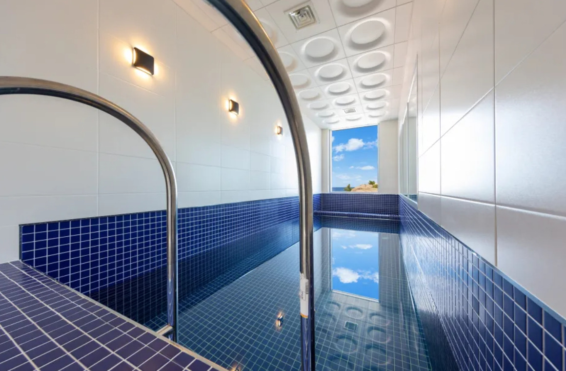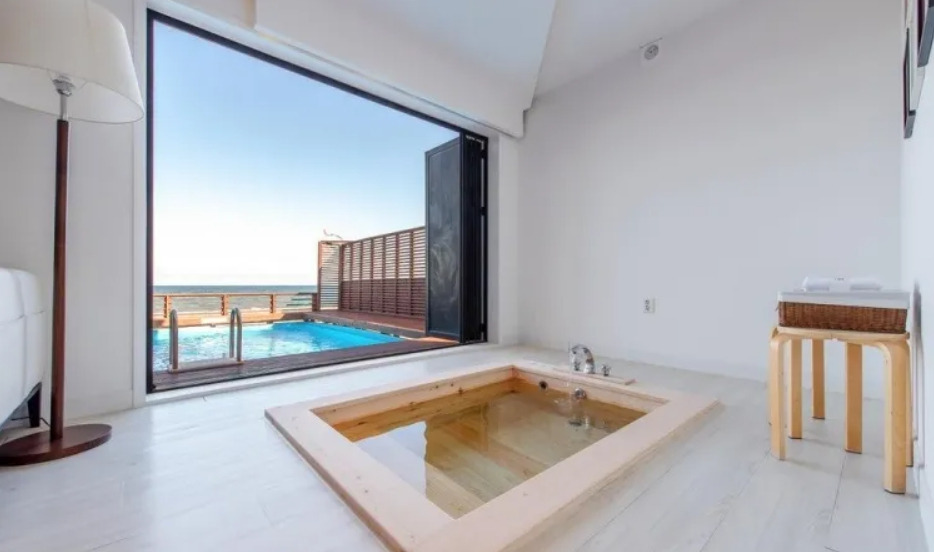 동절기에도 미온수 신청 시 수영이 가능하다. (미온수 요금 10만 원 별도) 특히나 101~105 객실에는 최고급 편백나무로 만들어진 히노끼탕이 준비되어 있다.