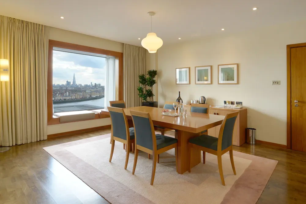 총 142개 객실을 보유 중이며, 일반 룸은 스탠다드와 슈페리어, 디럭스, 프리미어로 등급이 나뉜다. 전망은 리버와 시티뷰 중 선택 가능하다. 넓은 객실과 대형 석회암 욕실이 특징적인데, 한편, 모든 투숙객은 템스 강변에 위치한 헬스 클럽을 무료로 이용할 수 있다. 수영장부터 사우나까지 없는 게 없다.