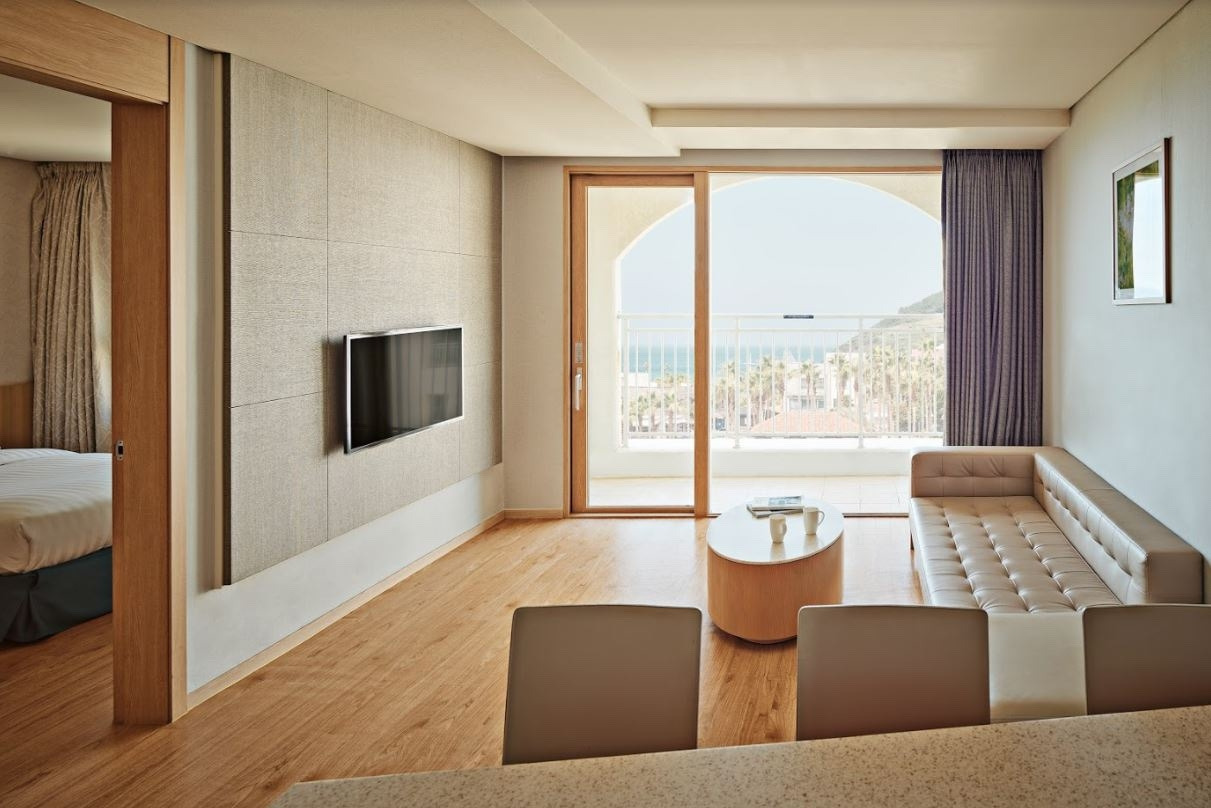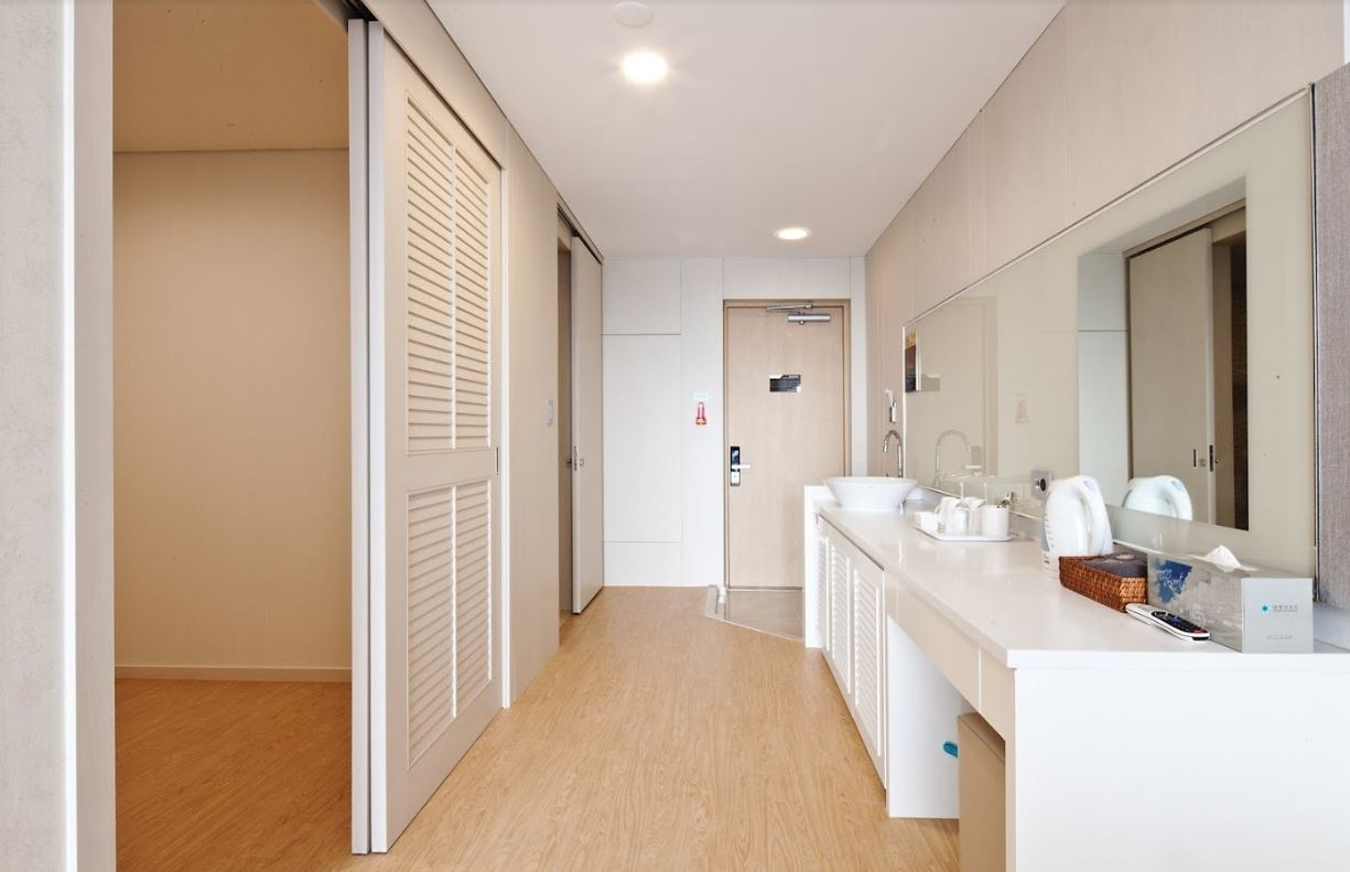 패밀리 클린 형 객실은 온돌룸 1개, 거실, 욕실로 구분되어 있어 최대 4명까지 머물 수 있어 가족여행 또는 우정여행 숙소로 인기가 높다. 거실에는 트윈베드 2개가 놓여있고, 티 테이블과 식탁이 있어 포장해온 음식을 먹기에도 편리하다. 아울러 테라스가 설치되어 있어 바다 뷰를 감상하기에도 딱이다.