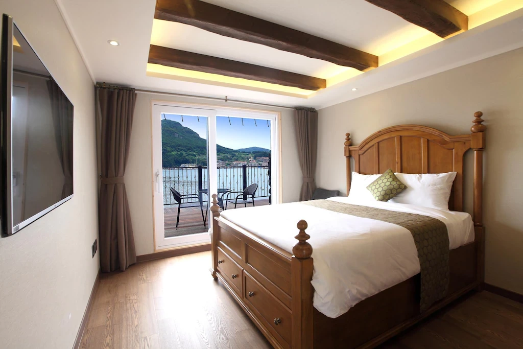 객실은 디럭스와 스위트, 온돌 스위트, 마리나 스위트, 한산 스위트 등으로 나뉜다. 일부 객실에는 남해의 정취 속에서 이국적인 조경을 감상하며 스파를 즐길 수 있는 야외 자쿠지를 설치해 놨다. 올스테이 하면 20만 원대 안팎부터 예약 가능하다.