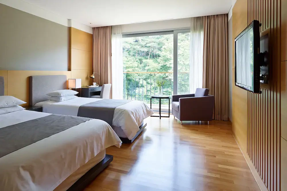 객실은 크게 디럭스와 코너 스위트, 로열 스위트, 빌라동으로 나뉜다. 베드 타입은 온돌부터 트윈, 트리플 등 다채롭게 구성해 놨다. 올스테이 하면 10만 원대 초반부터 예약 가능해, 가성비도 뛰어나다.