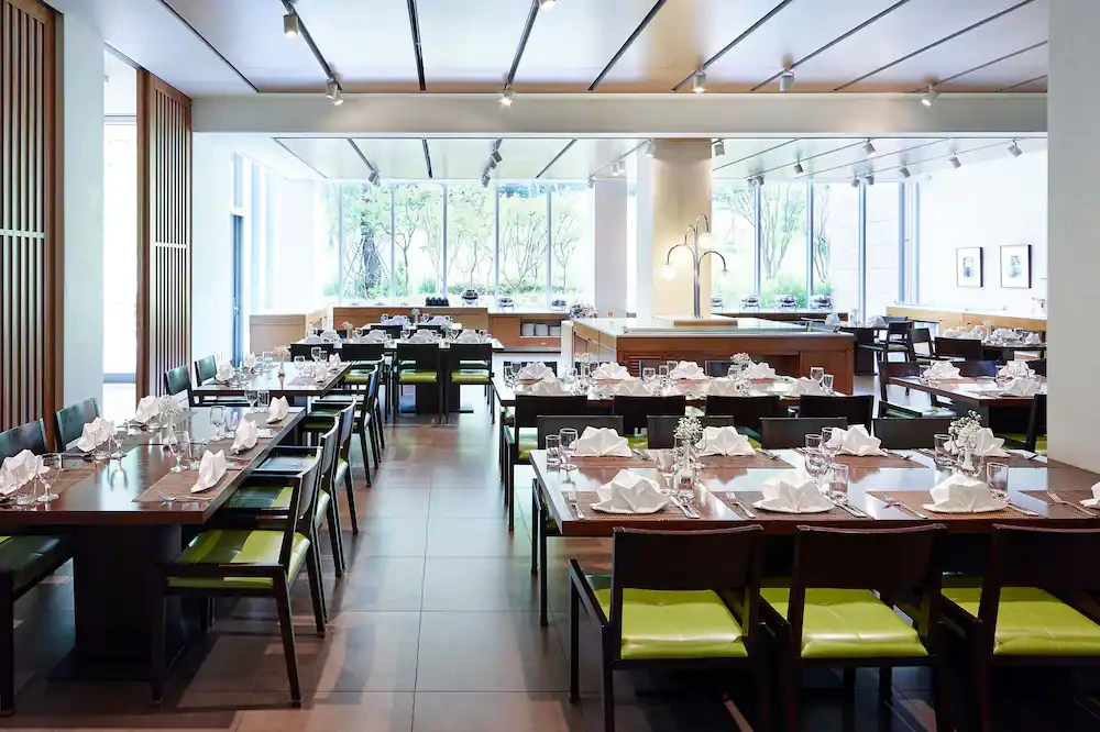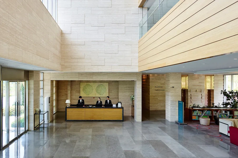 로비는 본관 1층에 자리했다. 같은 층에 레스토랑과 카페, 바, 사우나, 비즈니스 센터, 연회장 등이 있어요. 이외 부대시설로는 가든 풀과 잔디 운동장, 무인 편의점, 노래방 등을 갖췄다.
