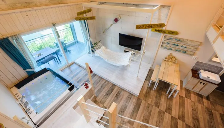 네르하21펜션은 다양한 테마의 객실을 보유하고 있다. 통영 펜션은 빈티지, 모던, 인더스트리얼 등 유니크한 인테리어로 고르는 재미가 있다. 대부분의 객실에서는 스파도 즐길 수 있으며 객실에 따라 테라스 족욕 혹은 실내 스파가 가능하다. 테라스에서는 미국 웨버 가스바비큐 그릴로 바비큐도 이용 가능하니 멋진 뷰와 함께 여유로운 시간을 가져보자.
