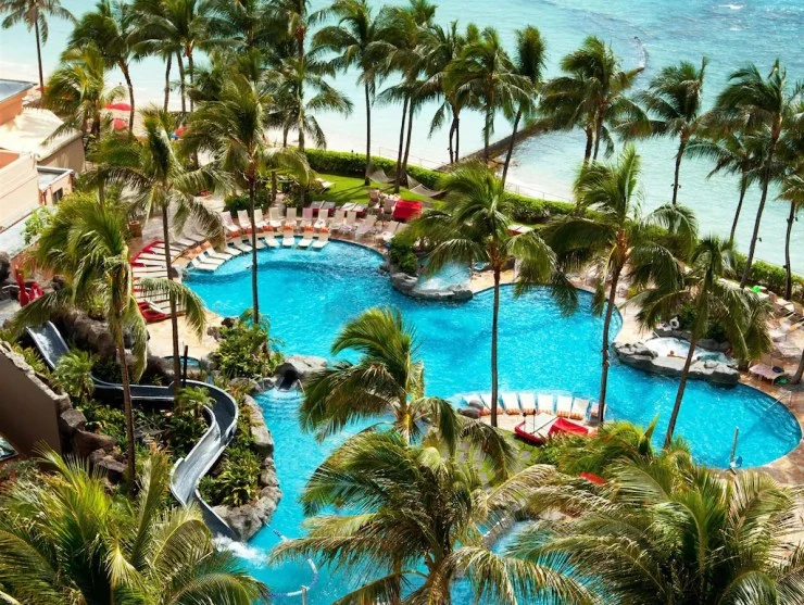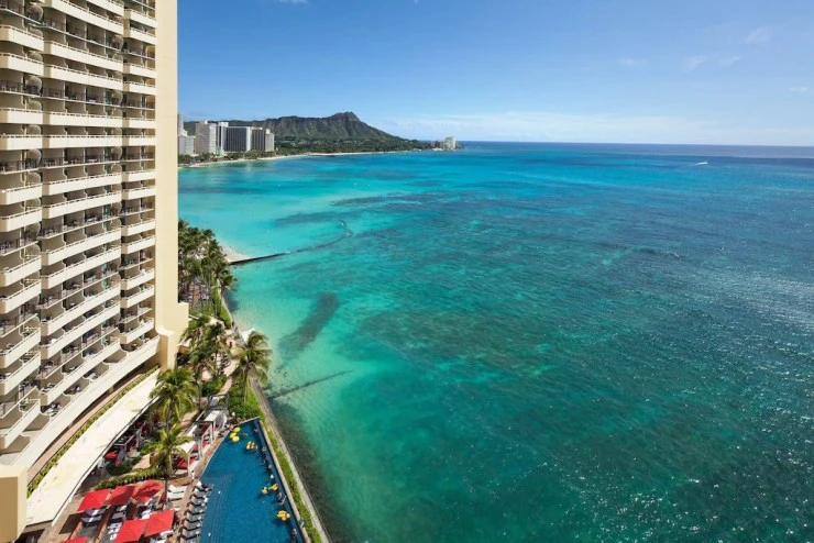 쉐라톤 와이키키 호텔은 바닷가 앞에 자리한 호텔이다. 넓은 수영장을 갖추고 있으며 총 1,636개의 객실을 보유하고 있다.