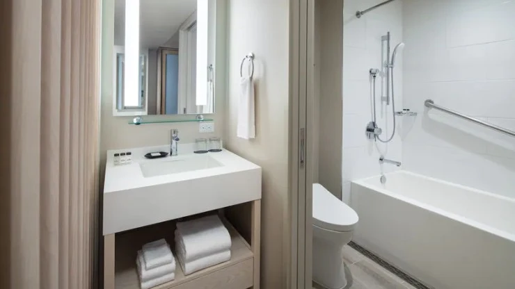 쉐라톤 와이키키의 어메니티로는 샴푸, 린스, 바디워시, 칫솔과 치약이 제공된다.