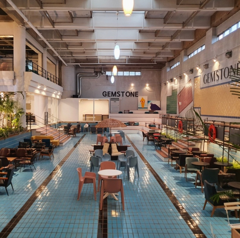 부산 라발스호텔에서 차로 5분, 도보로 10분 거리에 핫한 카페 ‘젬스톤’이 위치해 있다! 폐수영장 대교 레포츠를 재해석한 복합 문화공간으로 근처에 위치해 있어 함께 다녀와 보는 걸 추천한다!