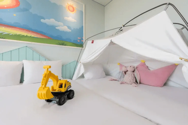 아이를 동반한 가족 여행자에게 인기가 높은 객실이다. 낙상 방지를 위한 저상 침대와 각종 장난감이 구비돼 있다. 침대는 더블과 싱글로 구성됐으며, 푹신한 요 세트가 제공된다. 창밖으로는 바다가 함께한다.